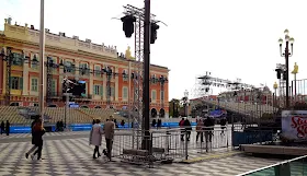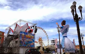 Täällä on karnevaalit tulossa ja niihin näytetään valmistautuvan massiivisesti. Istumapaikat noilla telineillä maksaa kuulemma 25 eruroa.