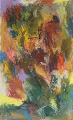 Kokeilin ystävämme tuomia liituja paksujen ja öljymäisten Sennelier-värien kanssa. Hyvin tuntuvat toimivan, koska tuossa sotkussa on minusta kolmiulotteisuutta ja eläviä tapahtumia.